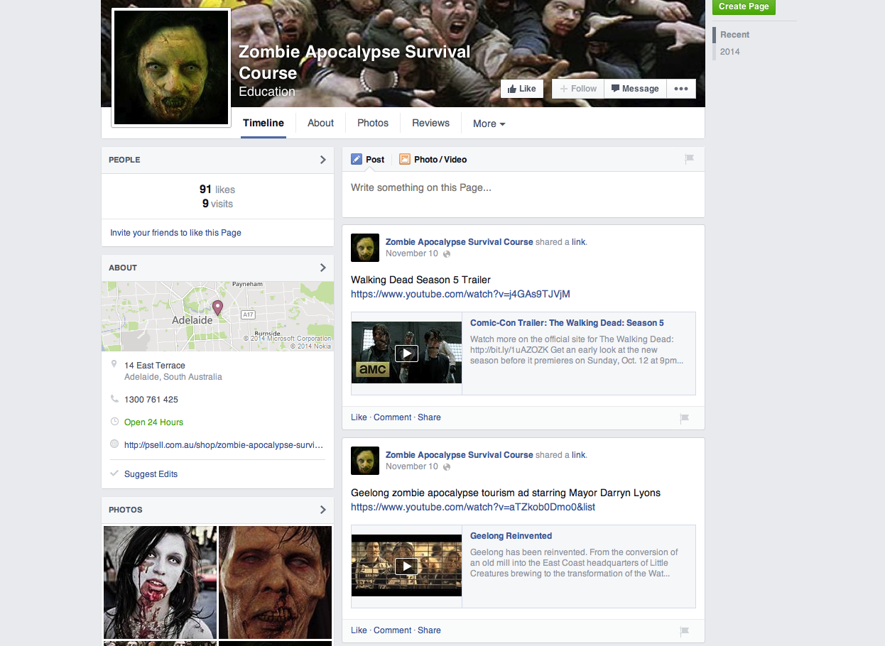 In closing, as I was searching online for articles about this sad story, I accidentally came across this Facebook page and this Zombie Apocalypse Survival Course from Adelaide (see the image below), they liked it. How could I forget to put them on the target audience list…